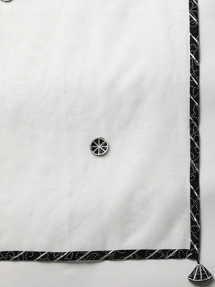 Divena Black and White Cotton Kurta Pant Set With Dupatta