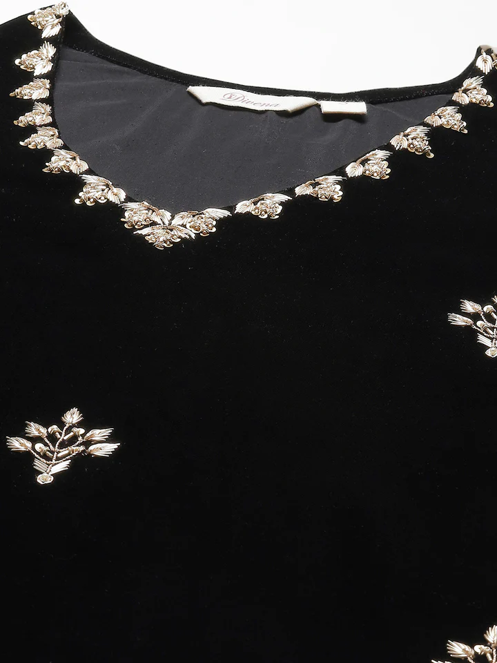 Divena Black Velvet hand work Kurta pant With Net Dupatta set