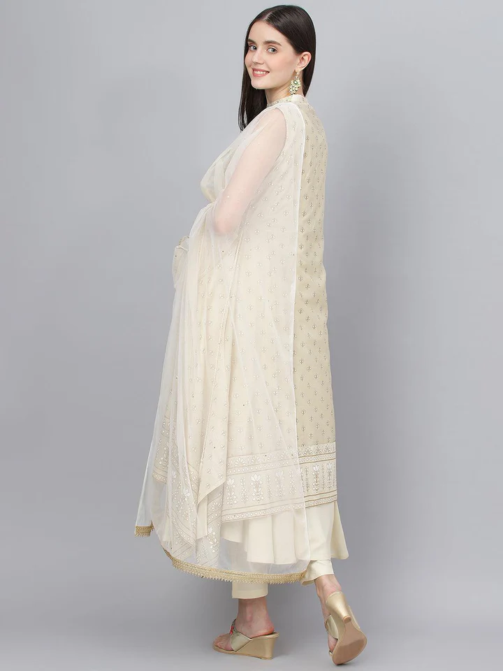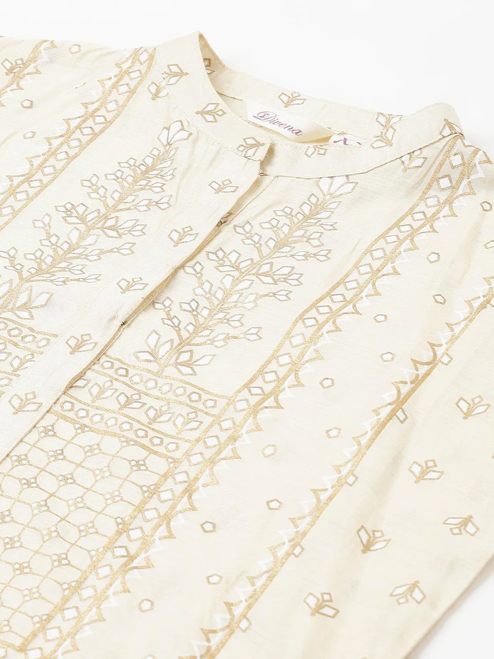 Divena Cream Chanderi kurta Pant Set with Net Dupatta