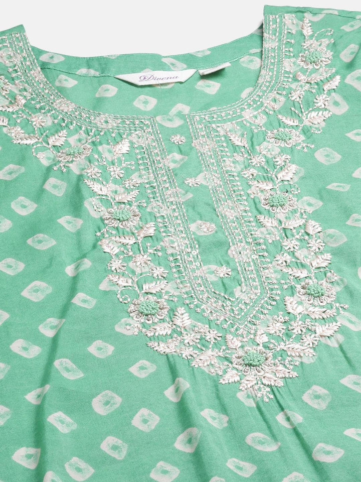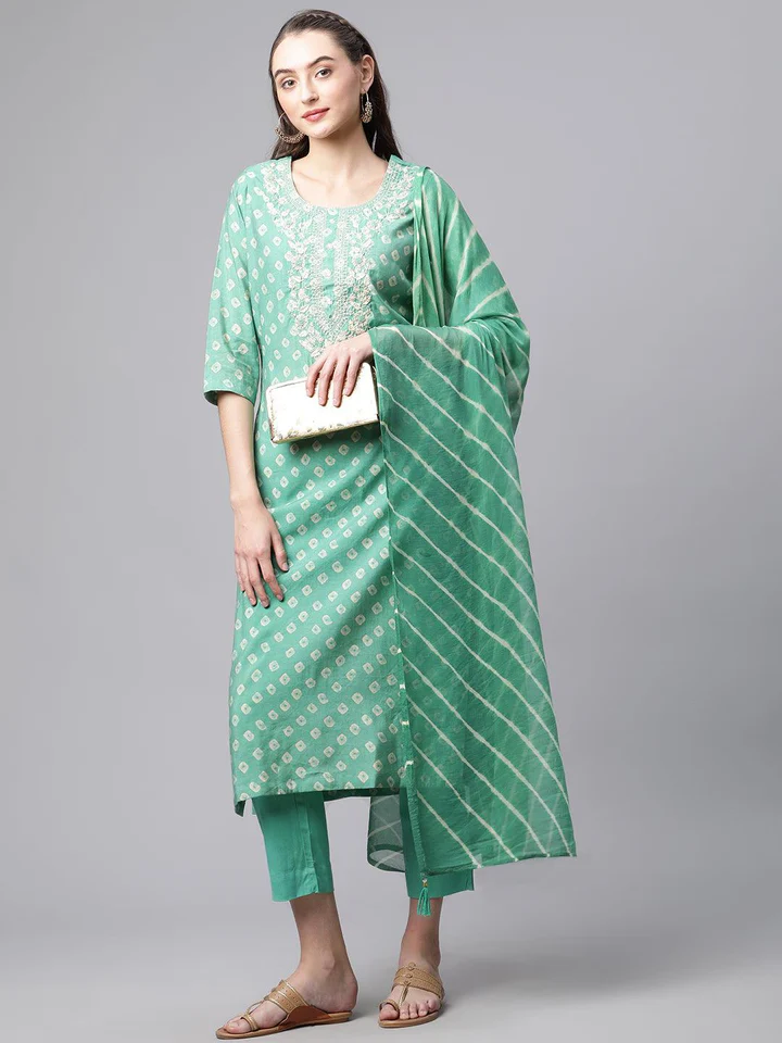 Be the first to review “Divena Green Chanderi Kurta Cotton pant set With Chiffon leheriya Dupatta” Cancel reply