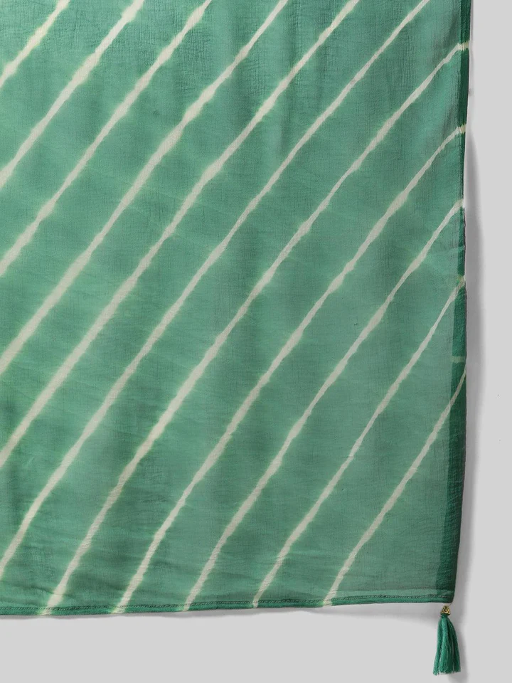 Divena Green Chanderi Kurta Cotton pant set With Chiffon leheriya Dupatta