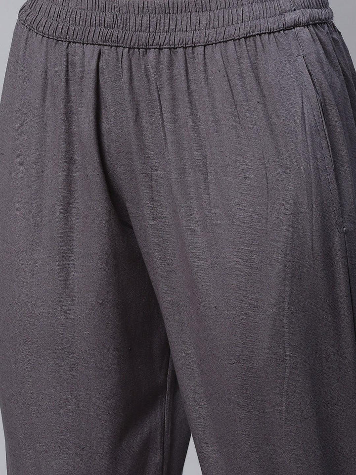 Exclusive Set of Grey Rayon Bandhej Kaftan Pant Set. it’s Key Hole neck with String Design and sequined work on large placement of all kaftan. it’s gota patti with tussels of threads bottom Border and sleeves Border. This kaftan with Grey Solid Cotton Flex pant to finish look. it has two pocket. it’s very Stylish, comfortable and best suited for any traditional wear.