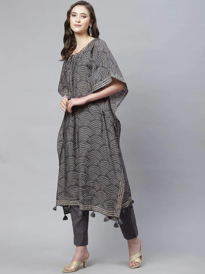 Divena Grey Modal Bandhej Kaftan Pant Set