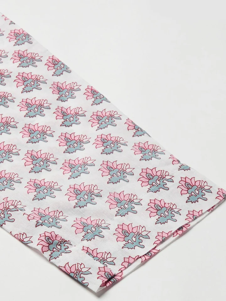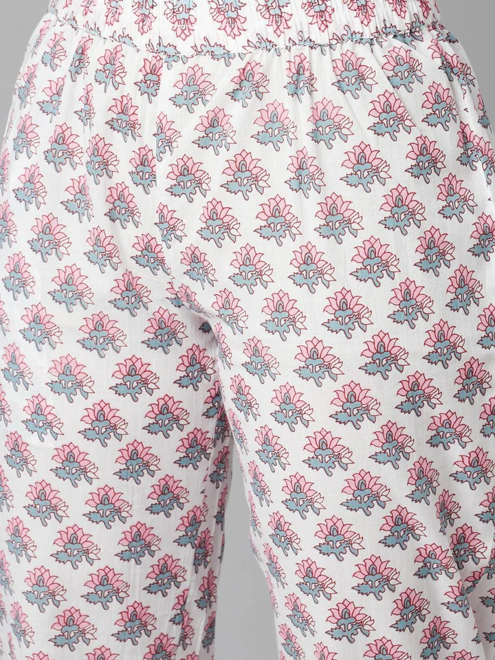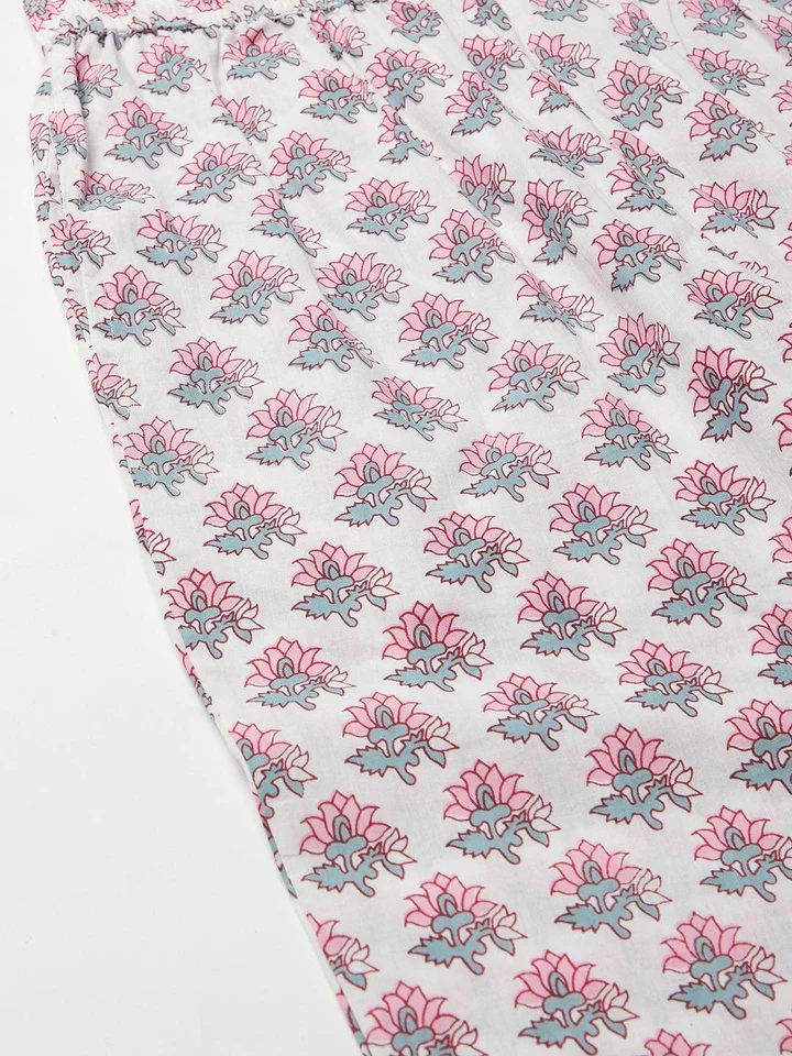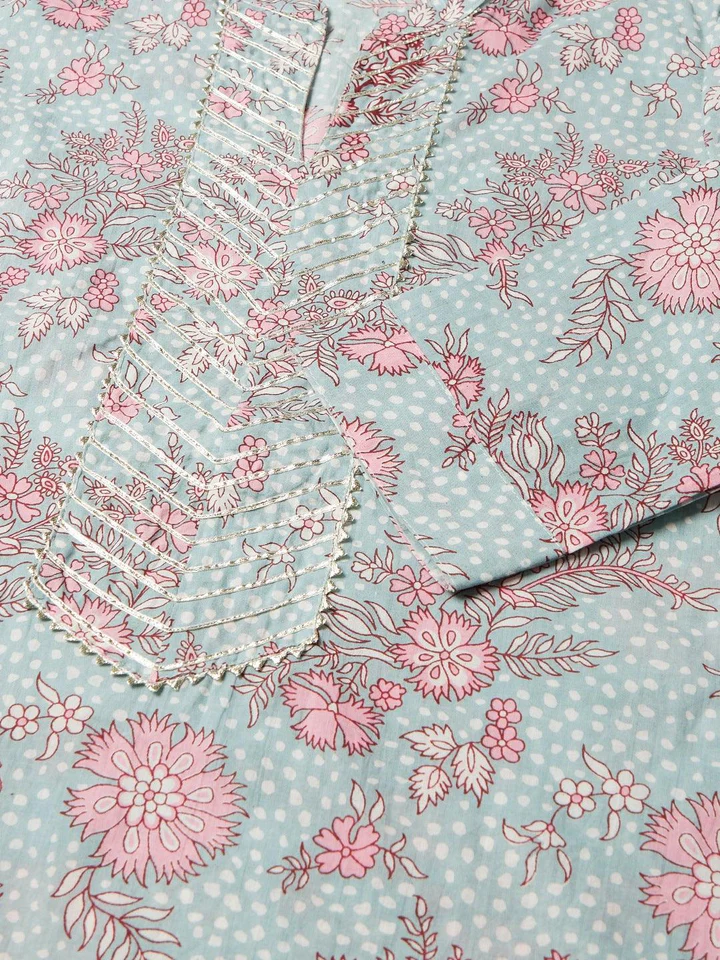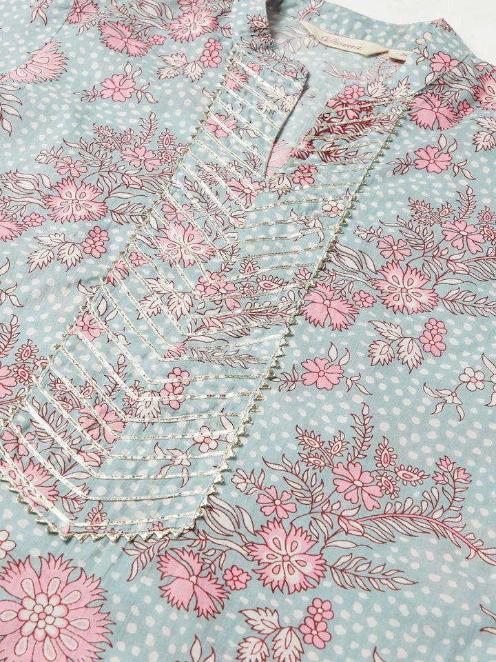 Divena Grey Pastel floral Printed Cotton kurta pant set