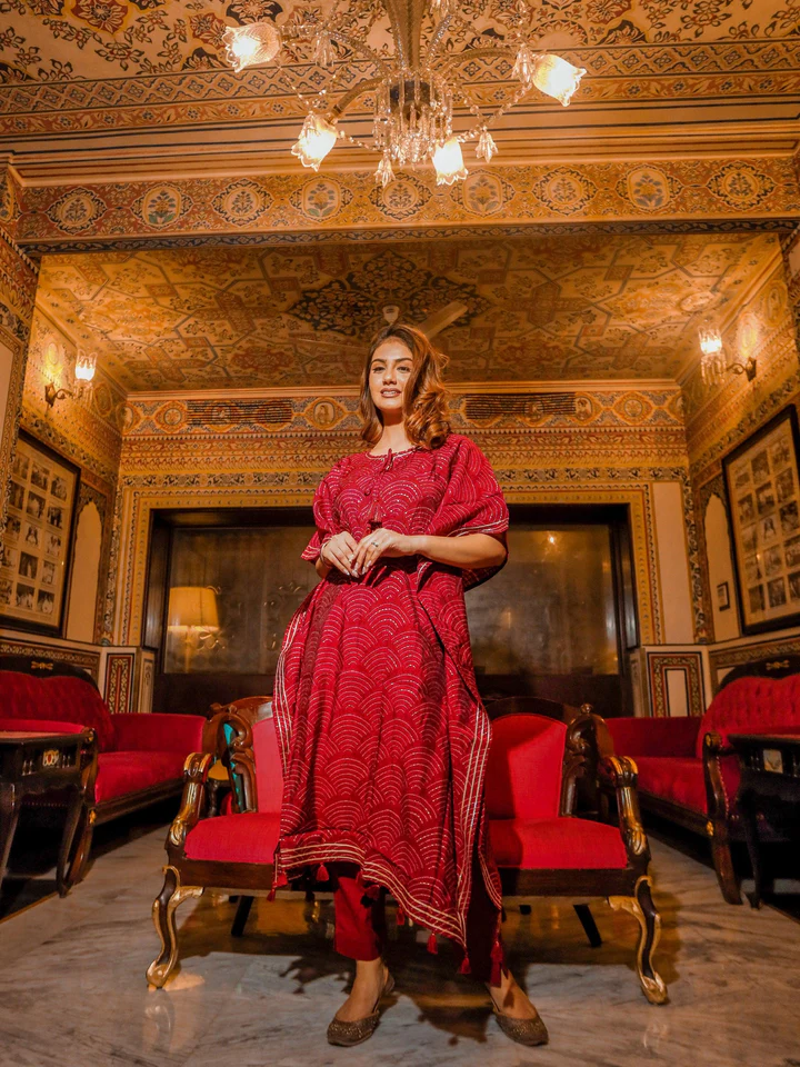 Be the first to review “Divena Maroon Rayon Bandhej Kaftan Pant Set” Cancel reply