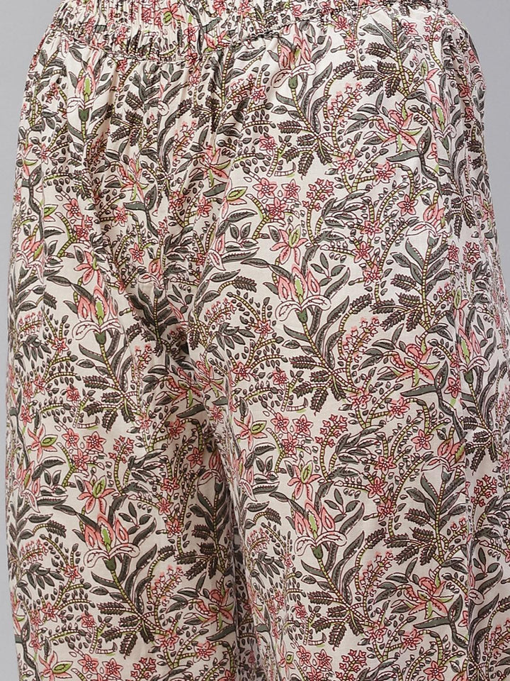 Divena Off white Floral anarkali kurta pant set with Dupatta