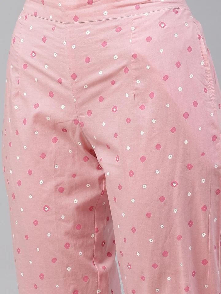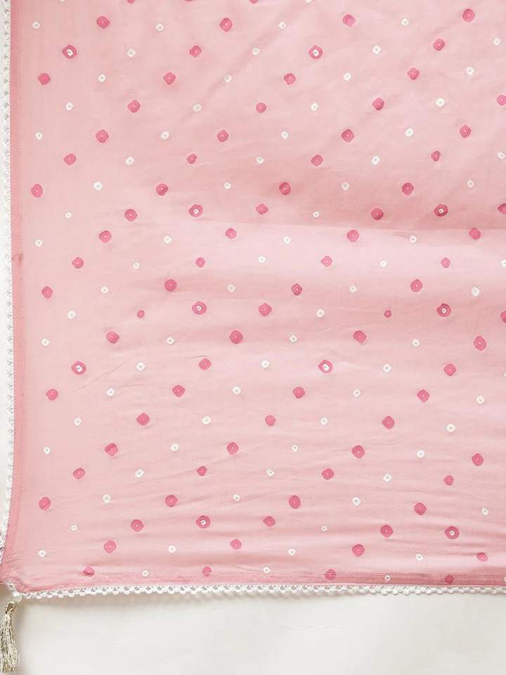 Divena Pink Cotton A-line kurta Pant set with Dupatta