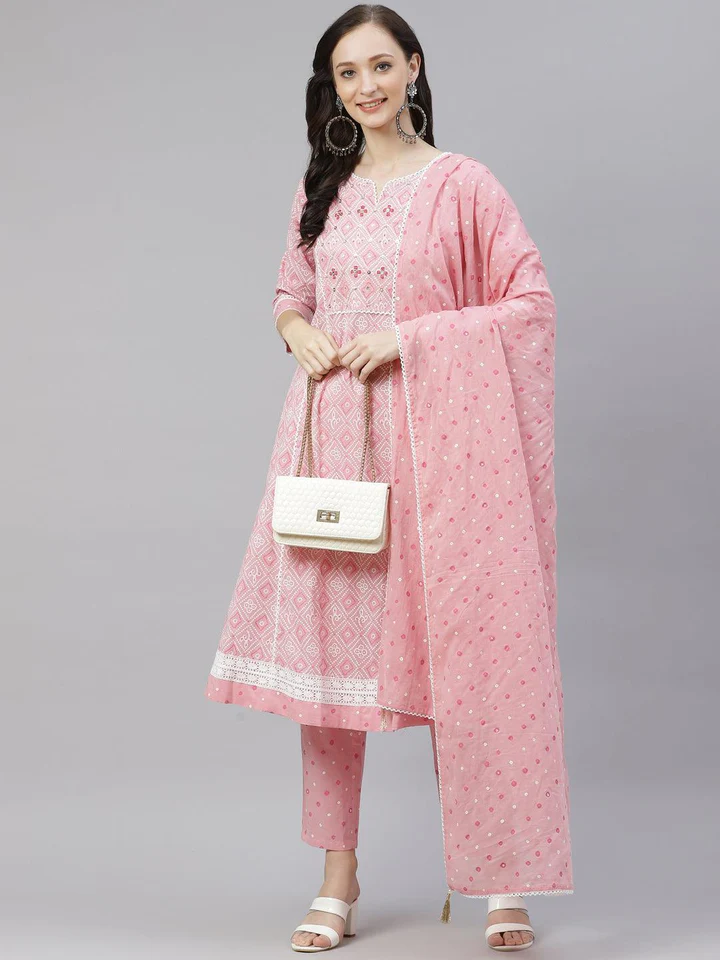 Be the first to review “Divena Pink Cotton A-line kurta Pant set with Dupatta”