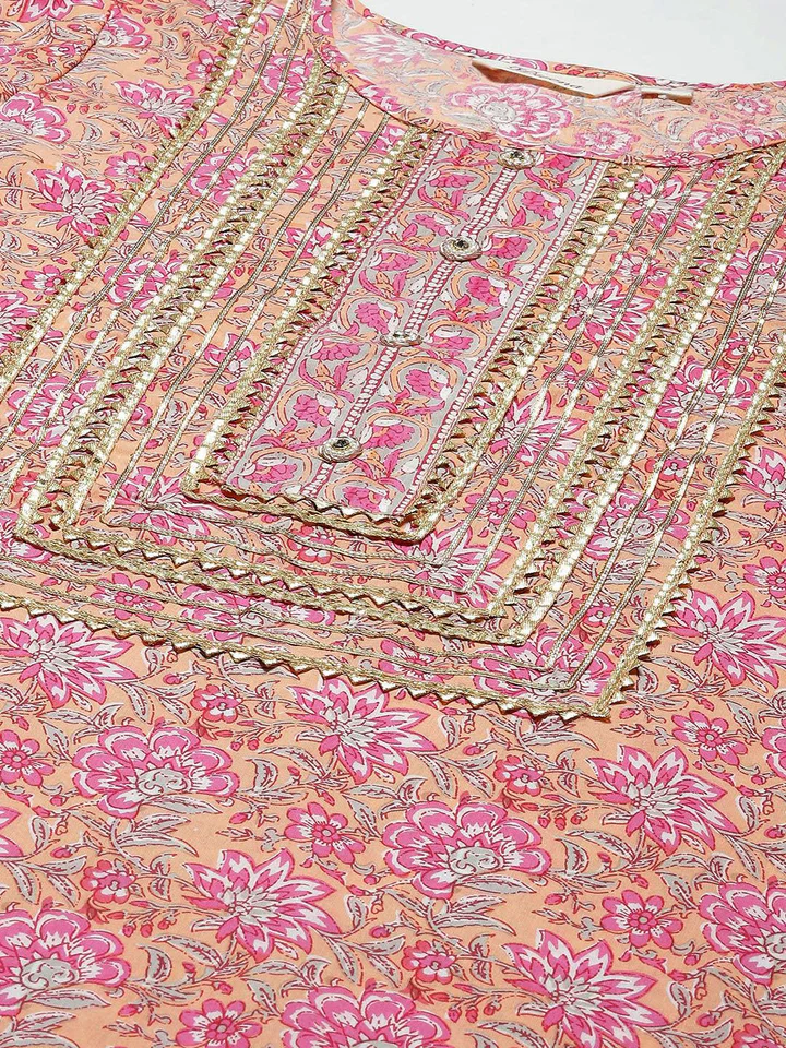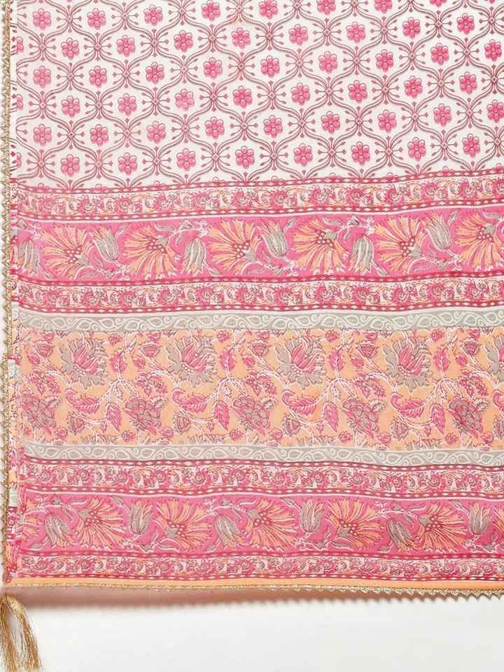 Divena Has The Ultimate Guide For Feminine Trendy Ethnic Wear, To Begin With You Can Choose This Very Sophisticated Piece From Divena, Which Is Pink and White In Color, Straight Kurti And Cotton Slim Fit Pants With Cotton Dupatta To Add The Grace And Complete Look, It Has Round neck with Gota patti work, Dupatta has golden Tessels, Best For Day Outing In A Summer Day And Even Evening Outing.