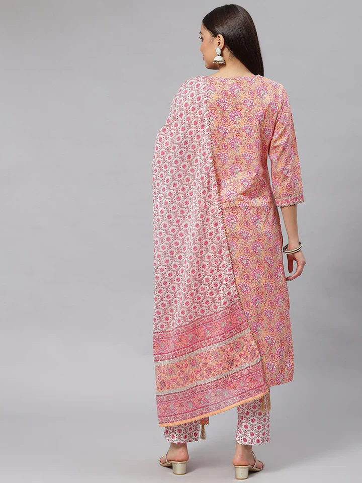 Divena Pink Cotton kurta Pant set with Dupatta