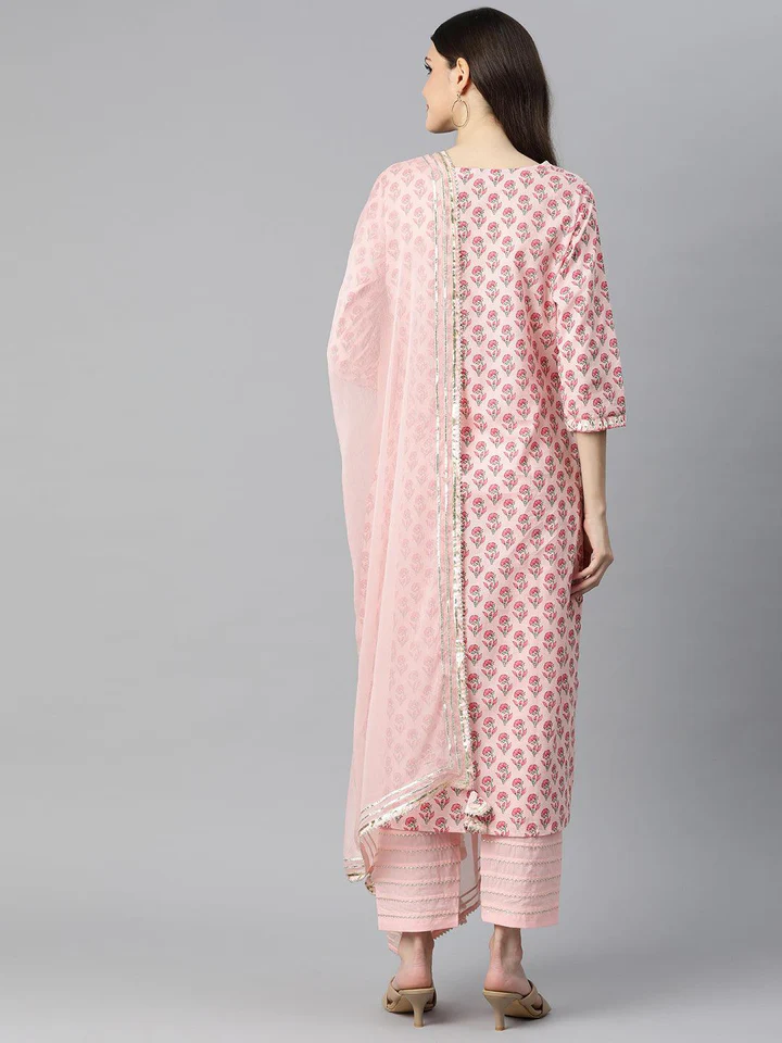Be the first to review “Divena Pink Cotton Straight Kurta Pant Set With Dupatta” Cancel reply