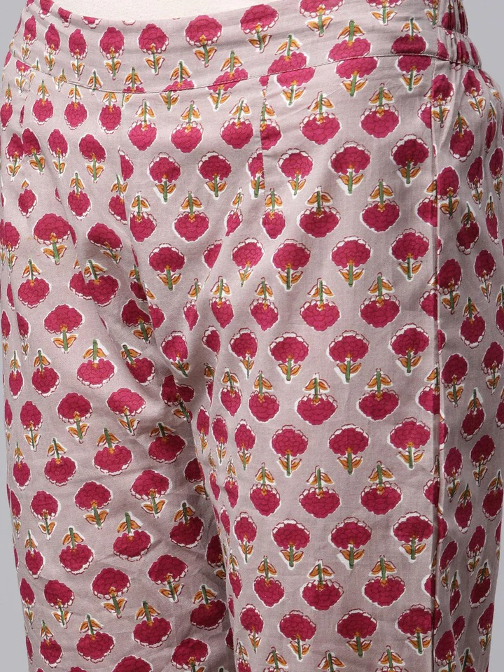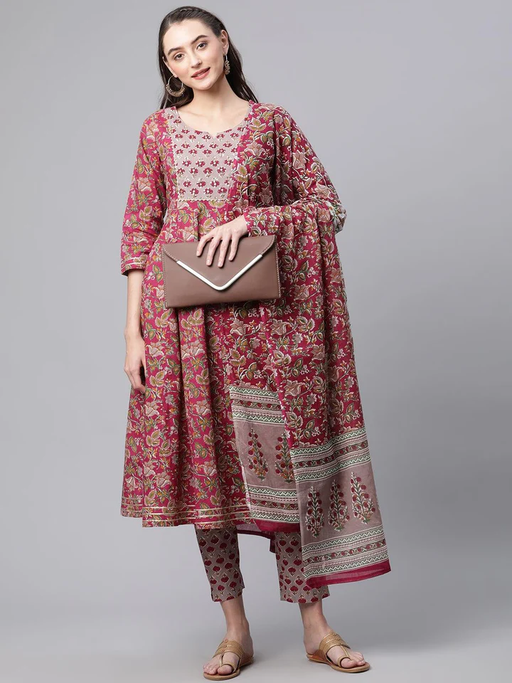 Divena Purple Cotton Anarkali Kurta Pant Set with Dupatta