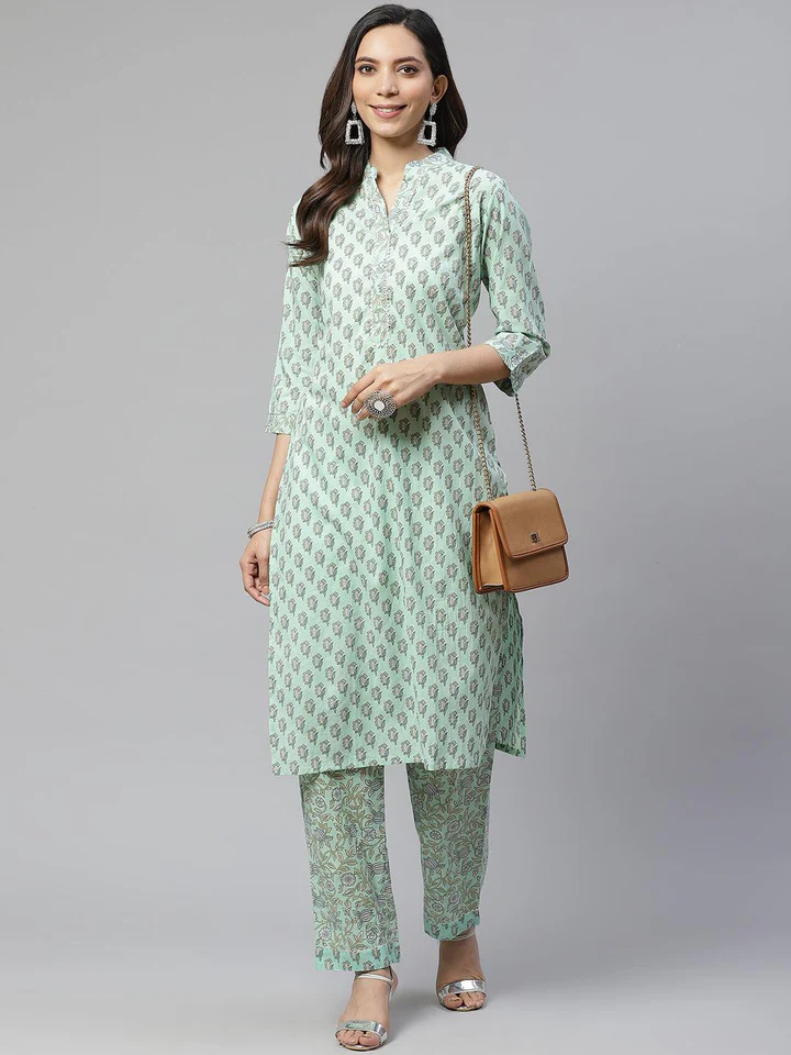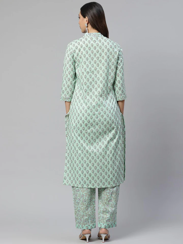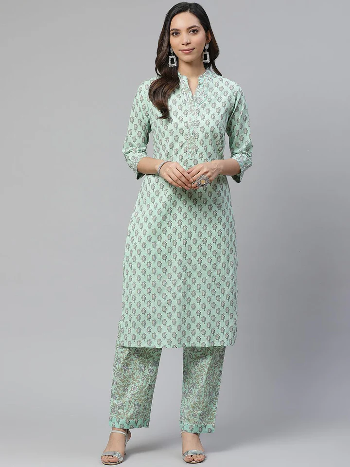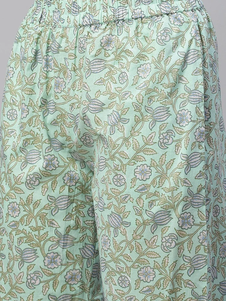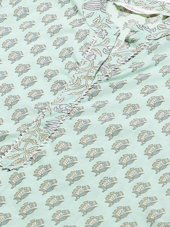 Divena Sea Green Cotton Printed Kurti Pant Set