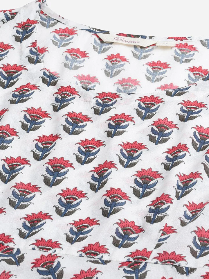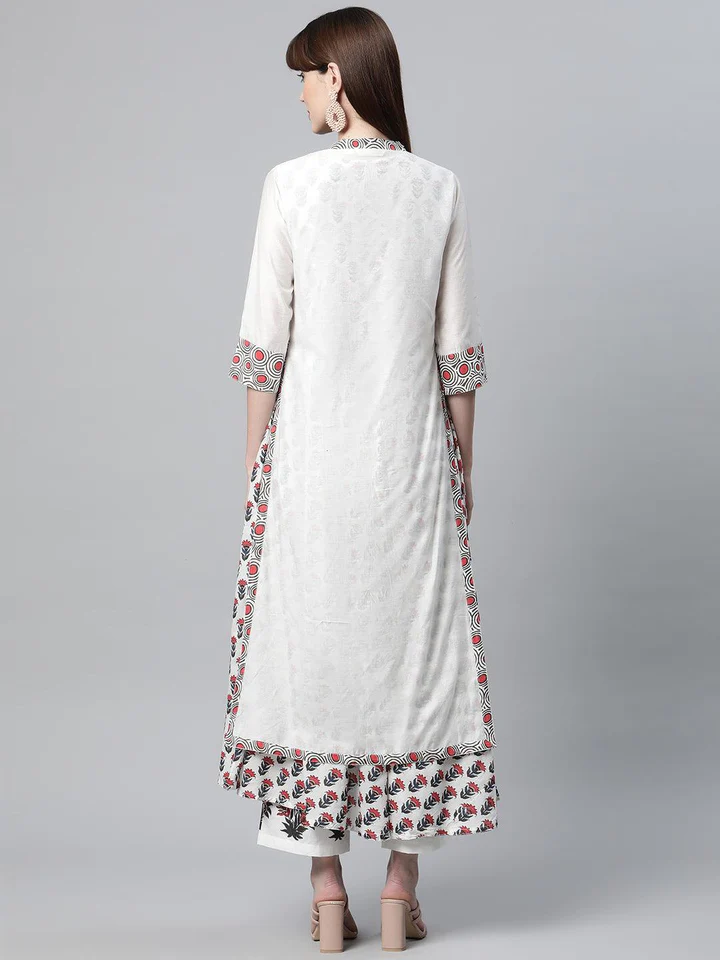 Divena White Floral Kurta Pant Set with Chanderi Shurg