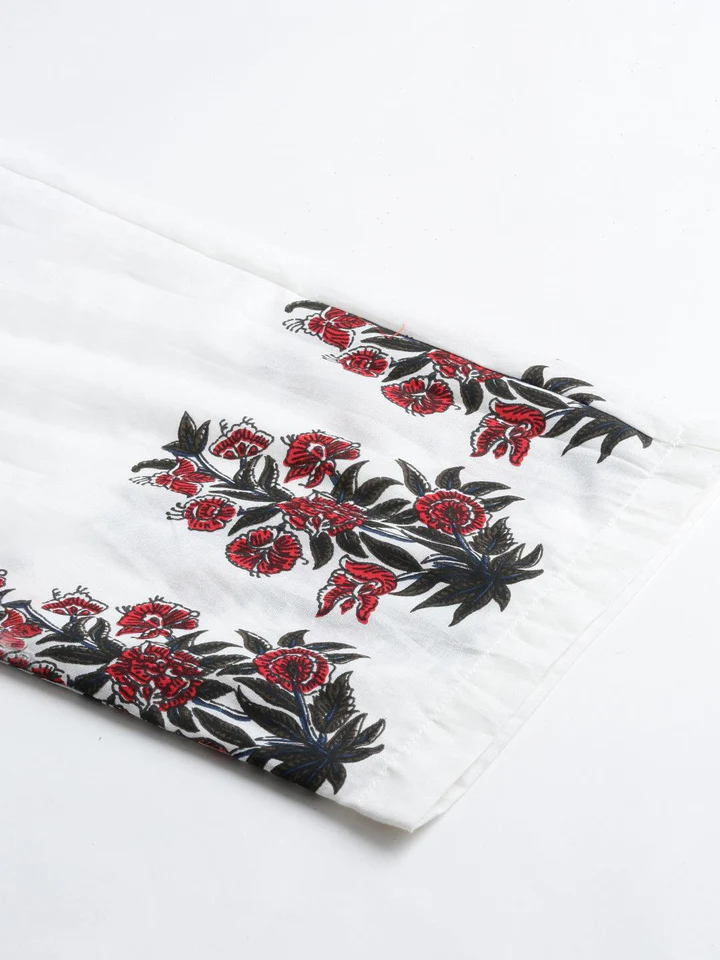 Be the first to review “Divena White Floral Kurta Pant Set with Chanderi Shurg” Cancel reply