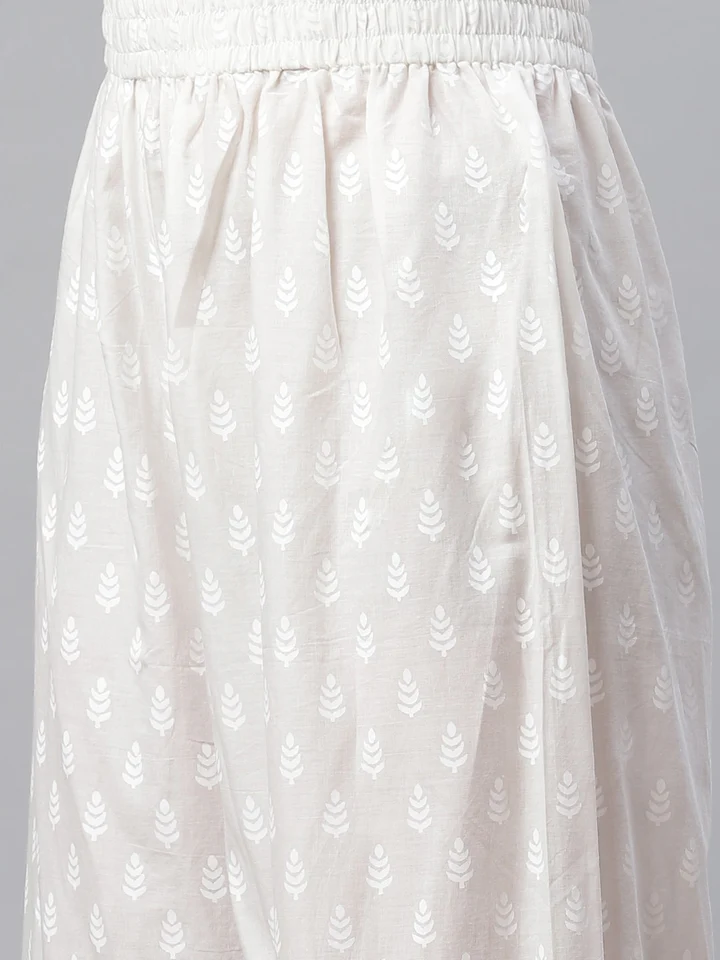 Divena White Khari Print Cotton Kurti With Palazzo Set