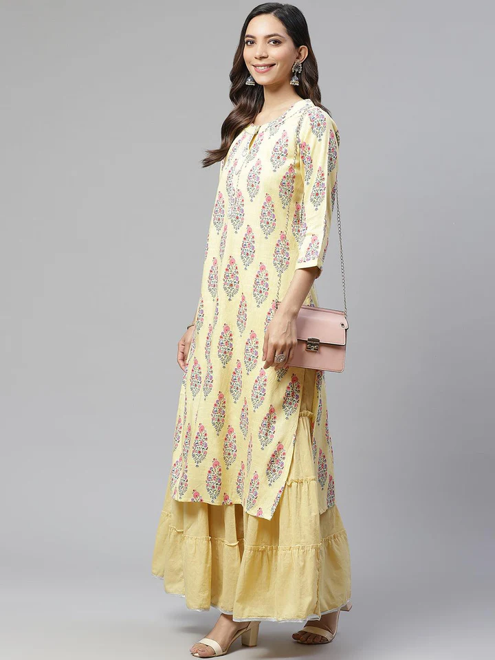 Divena Yellow Rayon Printed Kurti Sharara Set