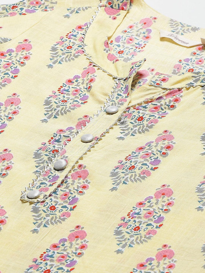 Shine Bright All Day Long With Yellow Rayon Printed Kurti And Sharara, It Has Subtle Print All Over The Kurta And Gota Work Detailing on The Neck. The Yellow Cotton Sharara Is All Flared Up Makes It Comfortable To Wear All Day Long. Best Suited For Formal And Informal Occasion.