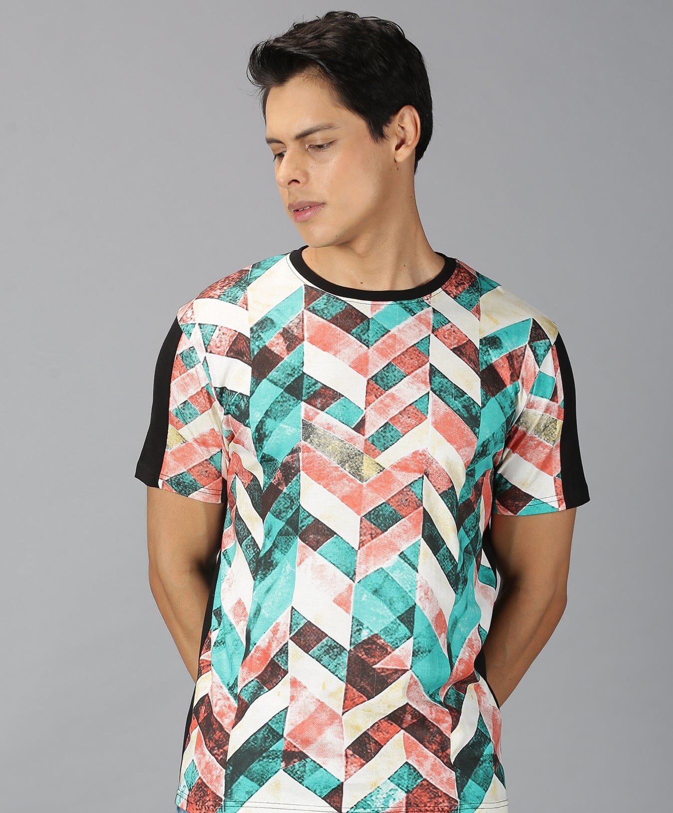 Men MultiColor Geometric Print Round Neck T-Shirt