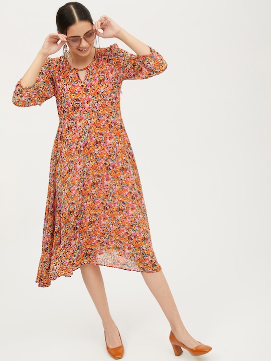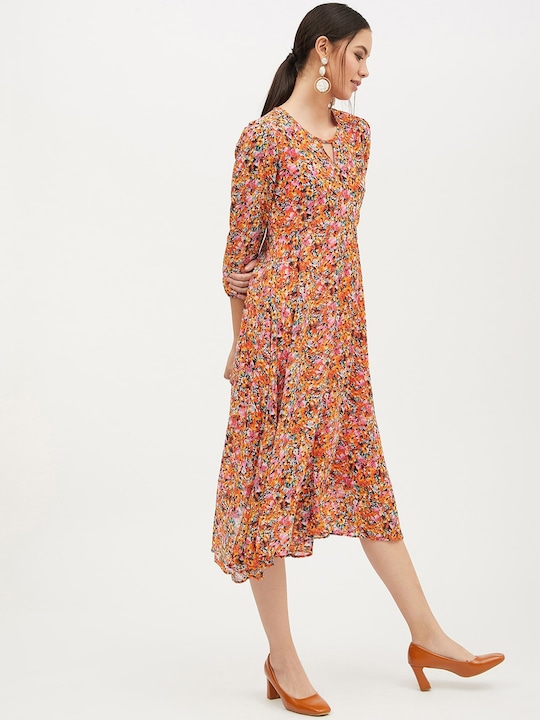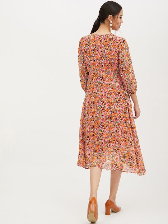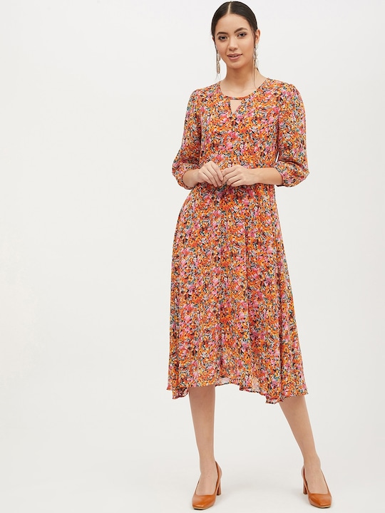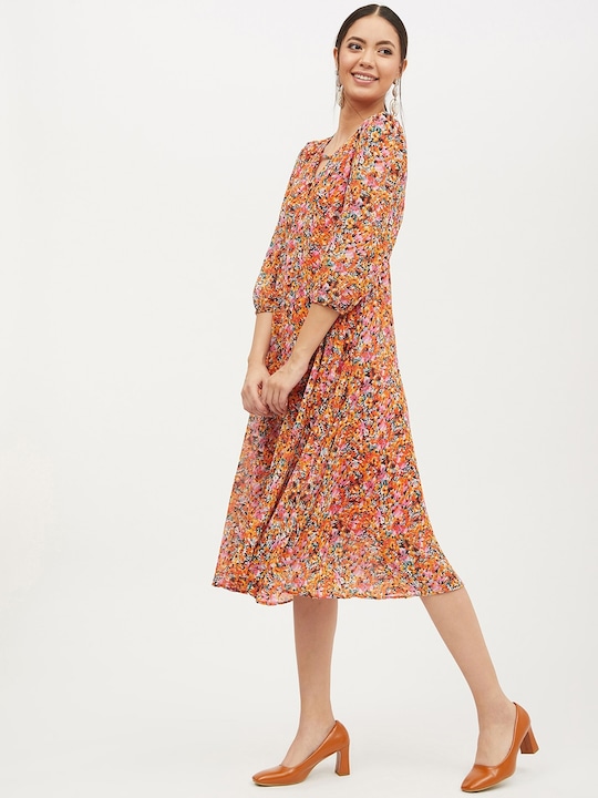 Pink & Orange Floral Printed A-Line Dress