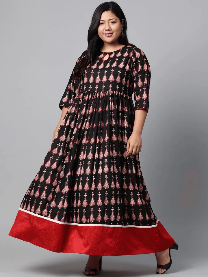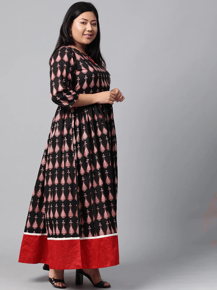Be the first to review “Plus Size Black Printed Cotton Floor Length Anarkali Kurta”