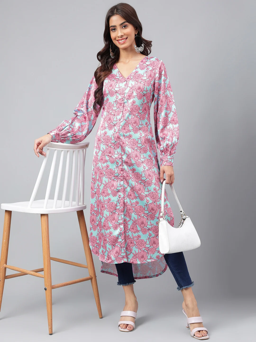 Be the first to review “Sea Green Satin Digital Floral Printed Gathered Kurta” Cancel reply