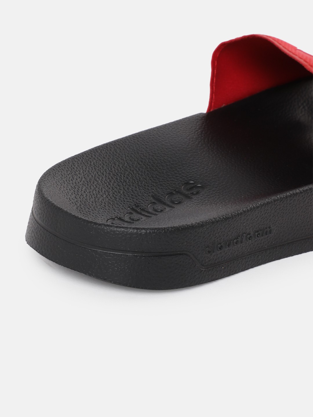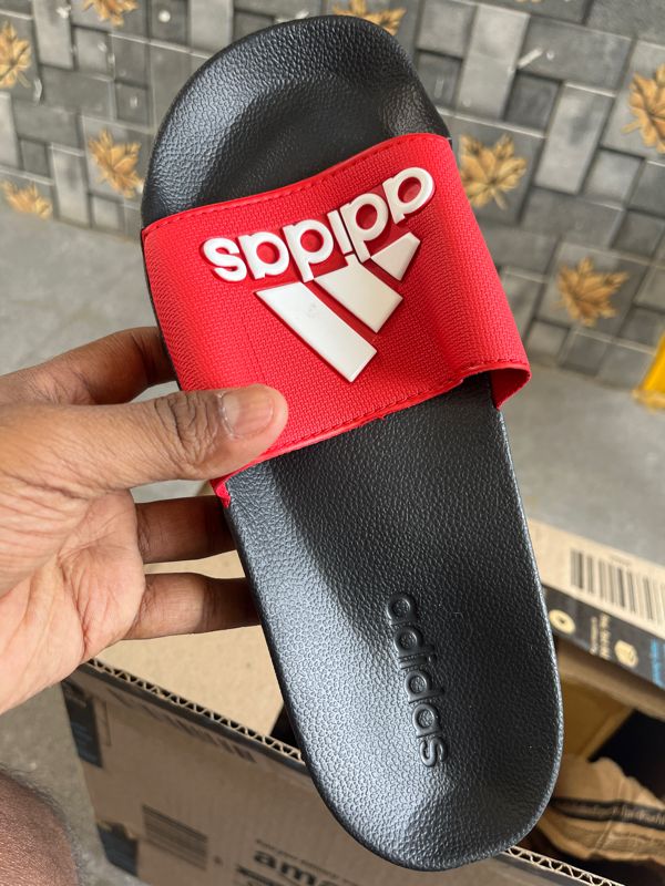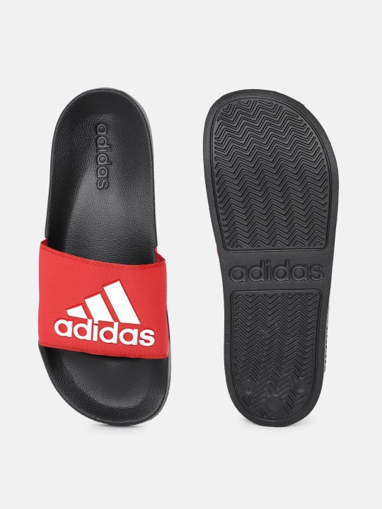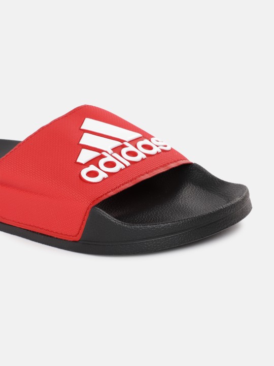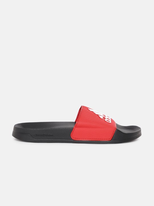 Red and white brand logo print sliders