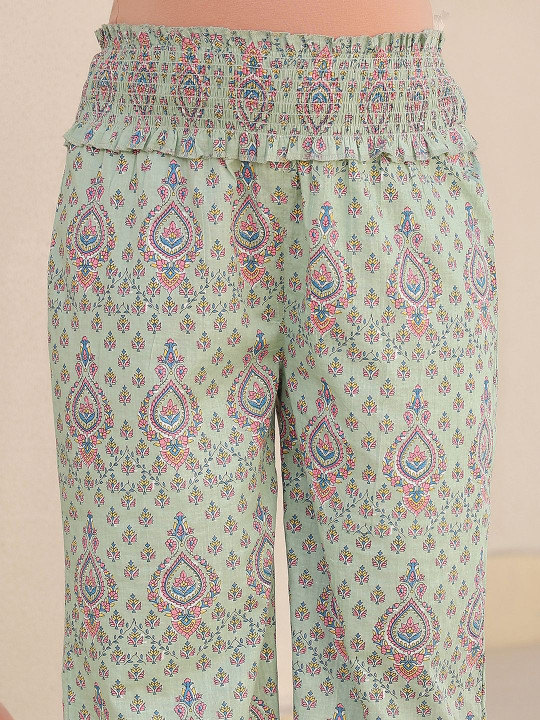 Women’s Light Green Pure Cotton Floral Printed A-line Maternity Kurta Pant Set